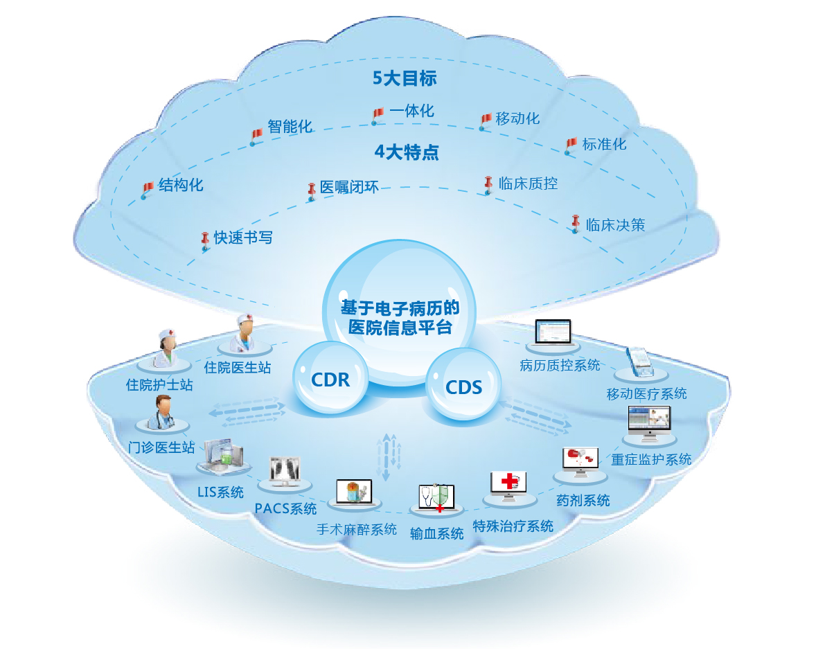 2 個平臺: 以醫院信息集成平臺為支撐平臺,以醫院運營管理平臺為運用平臺